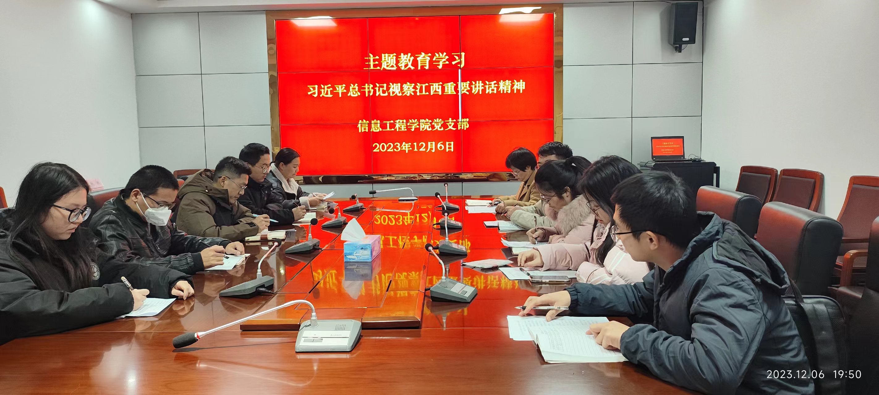 为深入学习领会习近平总书记考察江西重要讲话精神,提高党员教师传承红色基因用红色文化铸魂育人的能力。12月6日晚,信息工程学院党支部在行政楼412党员会议室,召开了学习习近平总书记视察江西重要讲话精神专题研讨会,教务党支部书记列席,信息工程学院全体党员参加学习。