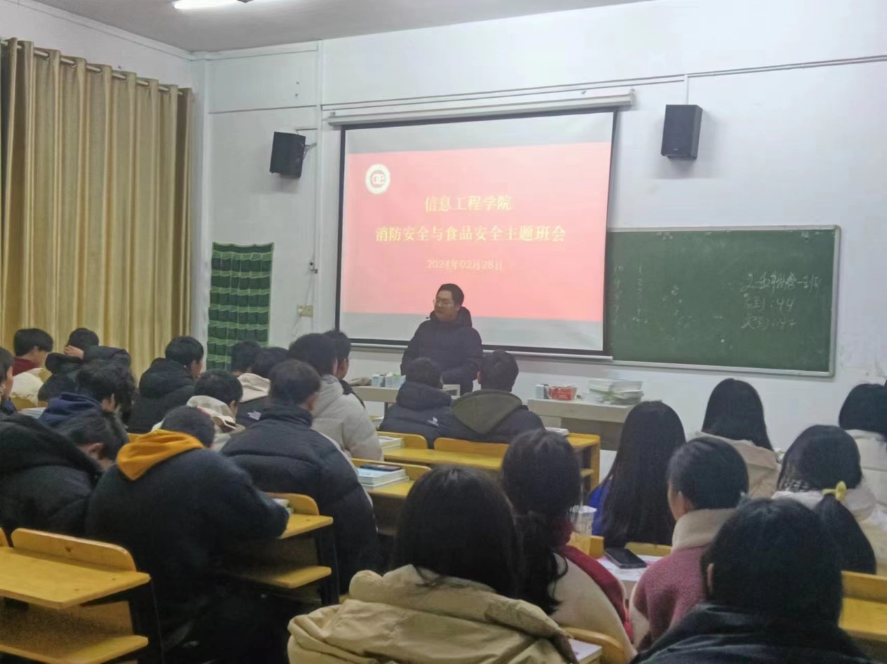 新学期开始,为了让同学们更好的在校园内生活,信息工程学院于2024年2月28日晚8点,在教学楼积极组织各班开展“消防安全”主题班会。
