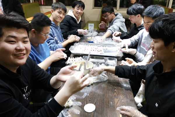 此次团建分为游戏环节与包饺子环节。在“夺旗”游戏中,参加团建的学生被分到3个队伍,在争夺旗帜的同时还需要保护自己身后的名牌不被对方撕去,队伍的3只旗帜全部被夺则判断队伍出局。大家热情高涨、斗志昂扬,誓为所在队伍取得胜利全力奋战,最终以罗鑫带领的三号队伍取得最终胜利。其后的包饺子环节,大家分工合作,配合无间,展现了大家的动手能力。在其乐融融的氛围中元旦晚会开始了,本次晚会在节目与游戏的作用下将现场气氛推向高潮,鼓掌叫好声此起彼,最后全体成员合照留念昭告着本次活动圆满结束。