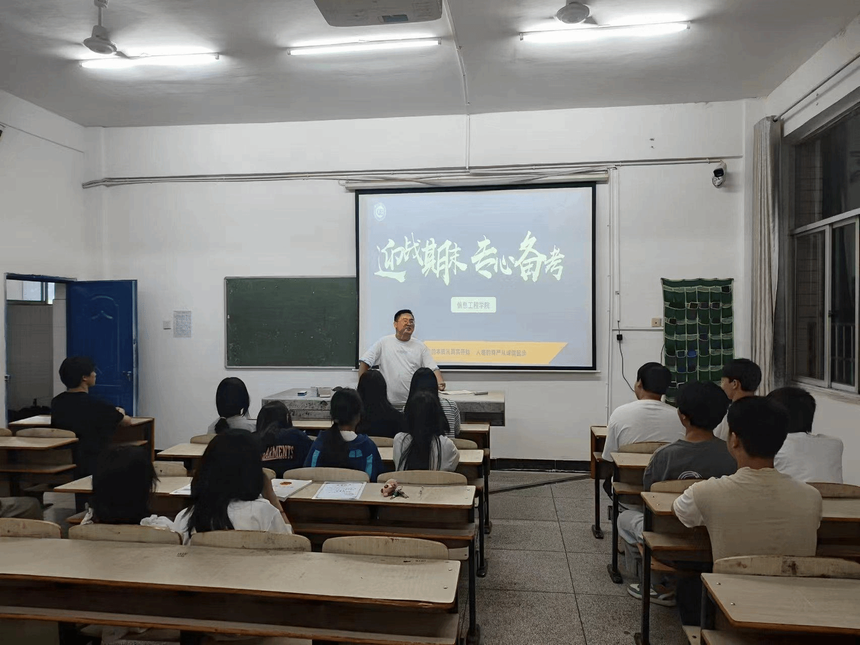 临近期末,为了让同学们更好的备战期末考试,在考试中稳定发挥的小技巧,信息工程学院于2024年6月10日晚8点在教学楼积极组织各班开展“迎战期末专心备考”主题班会。