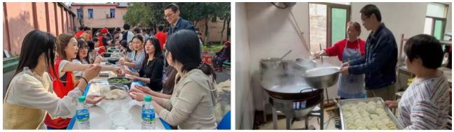 表演结束后,志愿者与老人们聚在一起包饺子、唠家常,现场热闹非凡。大家有包饺子的,煮饺子的,互相切磋着手艺,交流各自的包饺子技巧和心得。一会儿的功夫,一锅接着一锅的饺子浮出水面。志愿者们一碗一碗的盛好送到每个老人手中。老人们接过水饺,脸上洋溢着幸福的笑容,连声感谢志愿者们的到来和关怀。