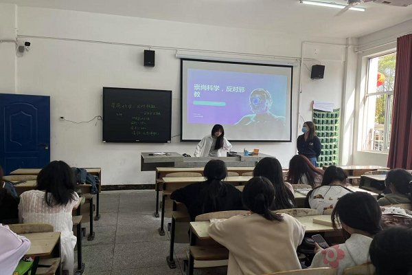 为弘扬科学与法治精神,增强学生识别和防范邪教的能力,幼儿师范学院于3月24日开展了以“崇尚科学,反对邪教”为主题的班会活动。