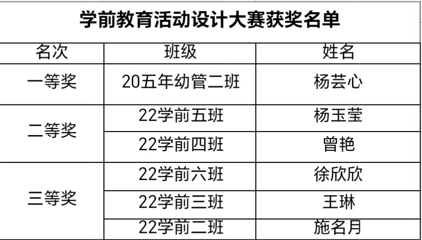 学前教育活动设计大赛获奖名单