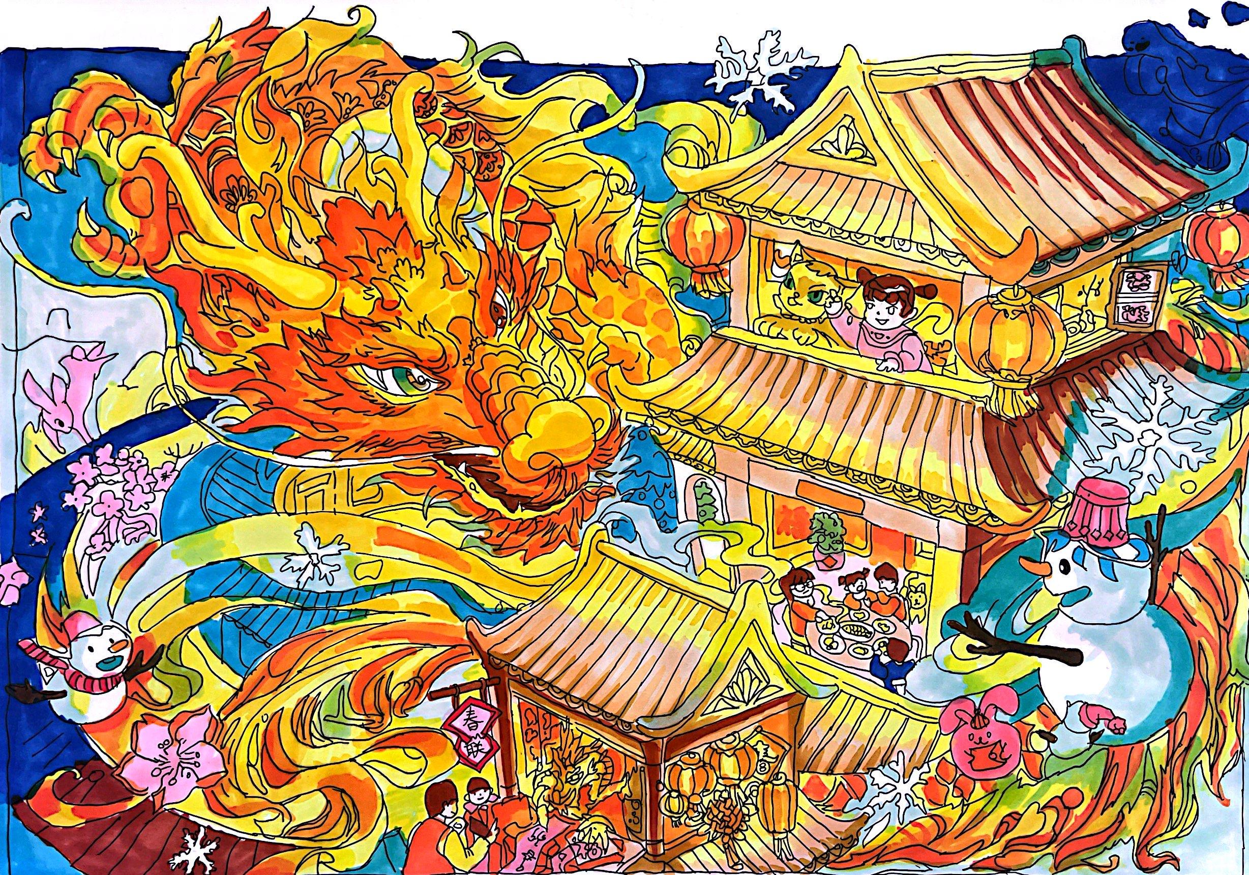 22学前三班 萧金艳 《龙腾喜庆·传统龙年》 绘画