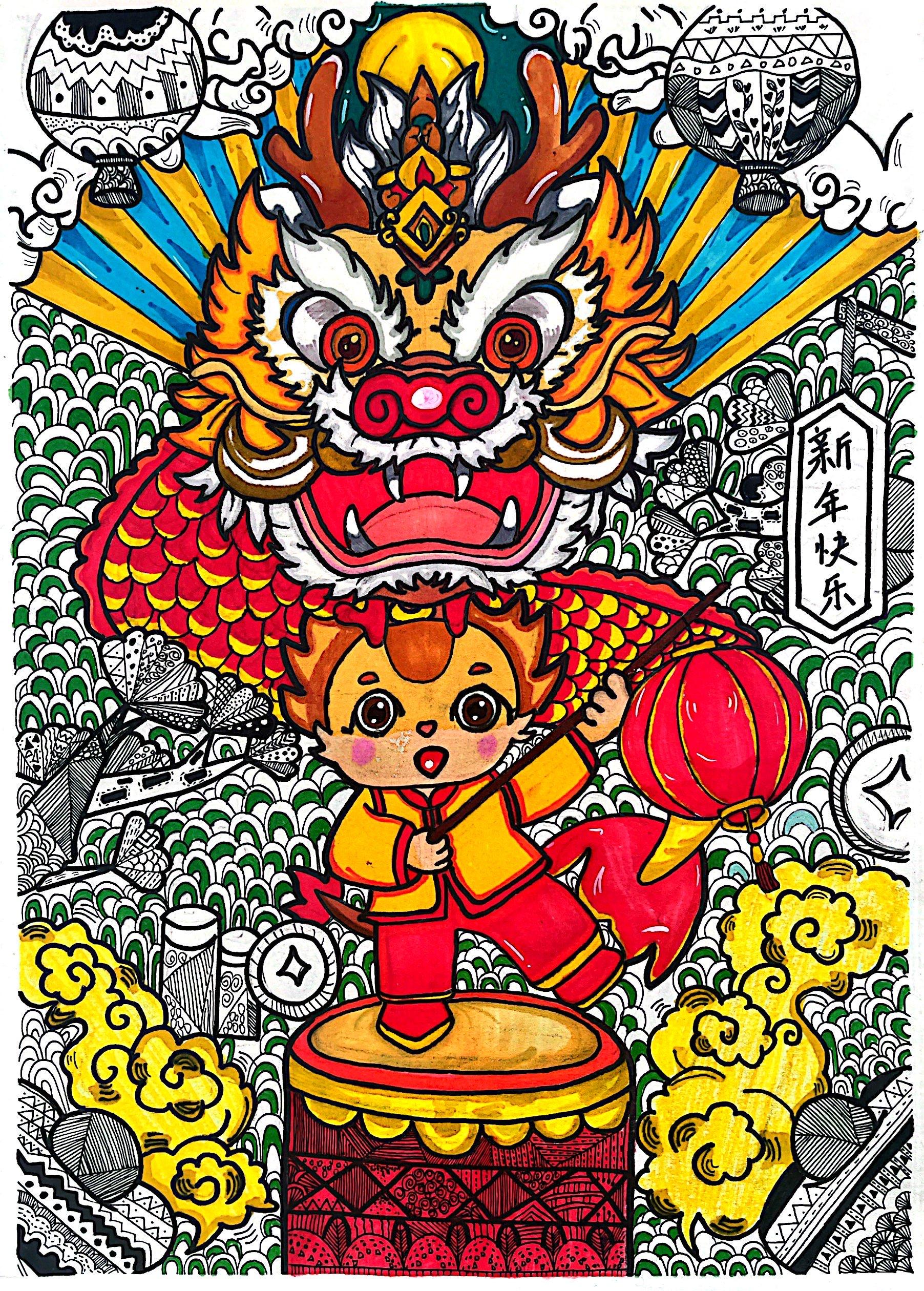 23学前四班 毛贞慧 《欢庆龍年》 绘画