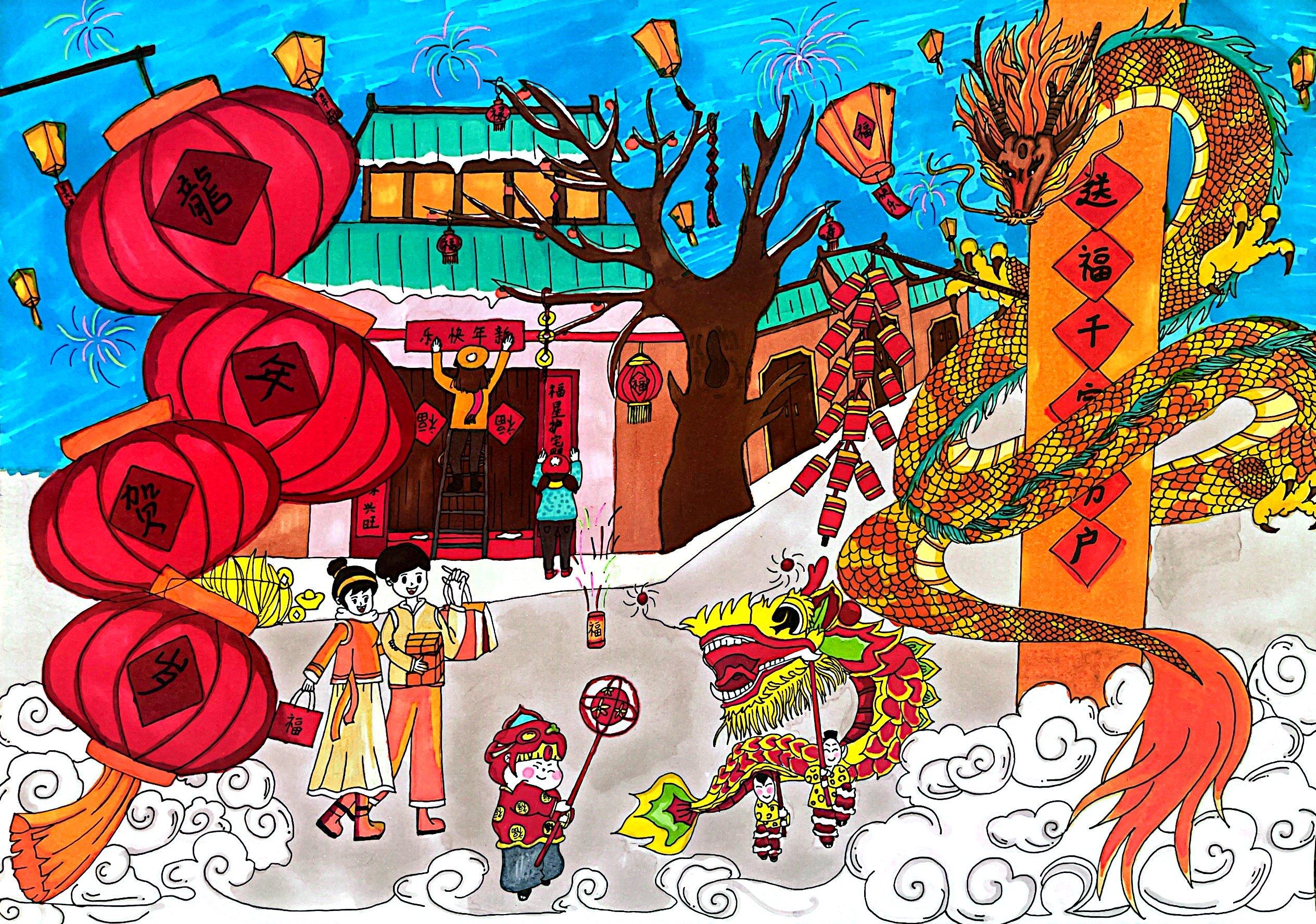 22学前一班 谈丽君 《欢庆龙年》 绘画