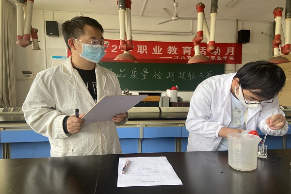 |  2022年学院职业教育活动月暨第五届职业技能竞赛节于五月如火如荼进行,在学校浓厚的竞技氛围中,农产品检测技能比赛于5月25日下午在实训楼305教室顺利开展。来自20级和21级的农产品质量检测、中草药栽培技术、中药制药、中药学4个专业的共20名选手参加了此次比赛。 本赛项分为笔试和实操两个环节。其中笔试利用学习通平台在规定的15分钟内完成答题。实操对接农产品质量检测国赛,主要考察同学们分析天平、移液管、容量瓶的正确使用。 比赛开始前,裁判向选手们强调比赛要求及注意事项。该项目为个人赛,20位选手分成5批,抽签决定批次以及工位号。在实验操作台上选手们高度专注,争分夺秒力求一气呵成。三位评委老师秉持着公平公正公开原则,对参赛选手的每一个流程认真打分。志愿者们在现场进行仪器的整理以及秩序的维护,甘于奉献,不求回报。 本赛项通过以真实职业岗位任务为基础的竞赛内容的实施,对提高学生职业技能操作水平、普及农产品质量安全知识、强化学生社会责任意识都具有重要意义。此外也让同学们深刻体会到了理论与实践相结合的重要性,激励了同学们学好专业知识、练就过硬本领的决心,对推动学院高技能人才队伍建设起到了很好的促进作用。