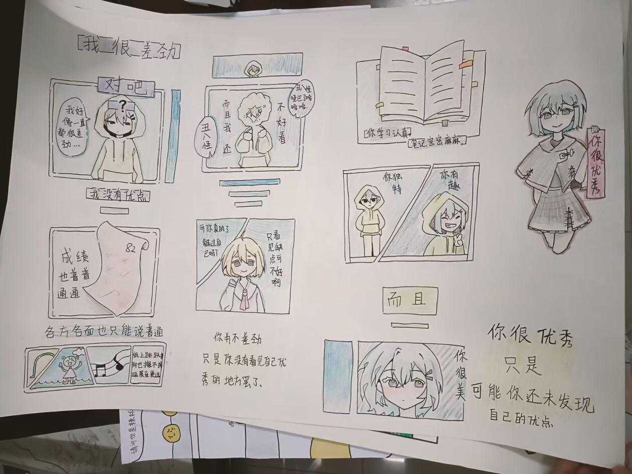 在此次活动中,同学们手中的画笔与纸张融为一体,凭借丰富的想象力、高超的画技和具有感染性的文字,勾勒出他们眼中美好的世界,一幅幅各具特色的心理漫跃然纸上。一笔一画间流露出同学们的真情实感,折射出同学们丰盈的内心世界,具有深刻的感染力和励志性。而且作品主题明确、内容丰富,从不同角度展示出了同学们美好的内心世界和积极向上的精神风貌。