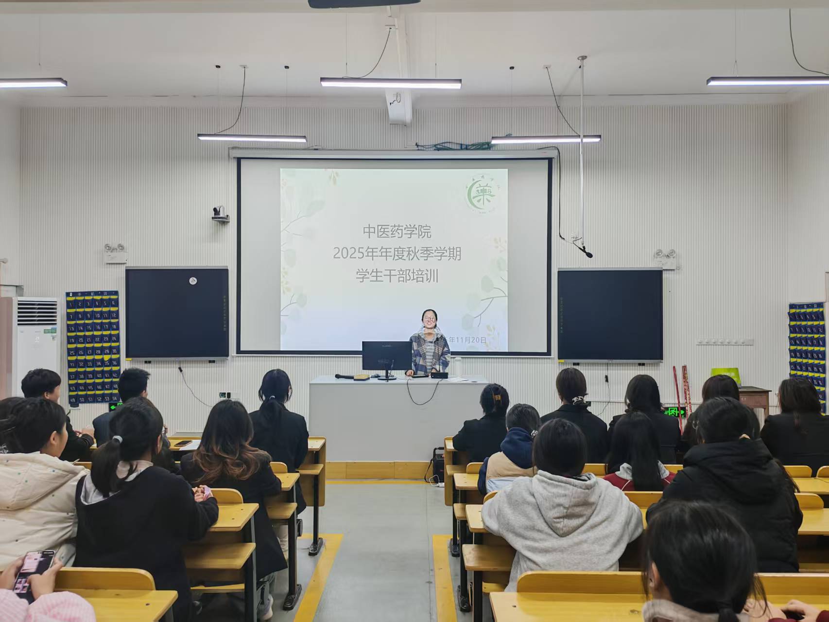 为进一步强化学生骨干队伍建设,提升履职能力与综合素养,打造一支“可靠、可信、可用”的学生组织,中医药学院于11月20日在第二多媒体教室开展秋季学生干部培训会。中医药学院党支部副书记、全体辅导员以及全院学生会干部、各协会干部参加本次会议。