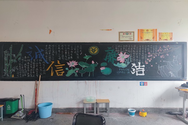 此次黑板报评比活动,有助于提高同学们的廉洁意识,倡导诚信守法的行为,营造了“以廉为荣”的校园氛围。