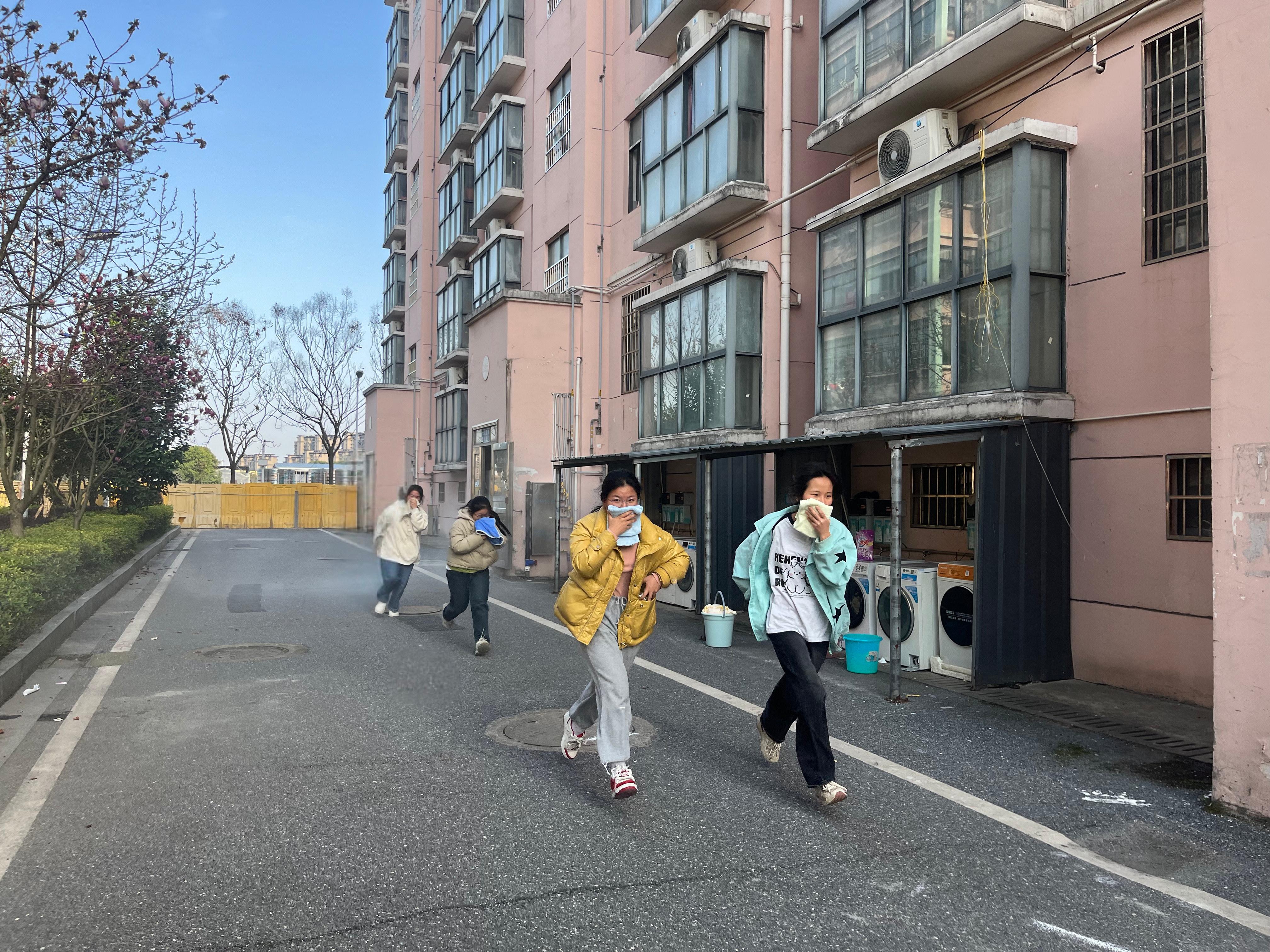 消防演练伴随着警报声响起,正式拉开帷幕。学生们在疏散引导员的指引下,迅速用湿毛巾捂住口鼻,低姿弯腰,按照预定的疏散路线有序撤离。整个疏散过程紧张有序,在规定时间内,全体学生就已安全疏散至指定地点。随后,相关演练负责人对此次演练进行了总结,对学生们的表现给予了肯定,并针对演练中存在的问题提出了改进建议。