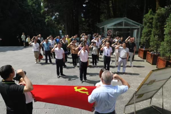 烈士陵园铭宗旨,践行初心担使命。在井冈山革命烈士陵园,学员们聆听了一堂《真心实意为民 强化宗旨意识》的现场党课,庄严肃穆,排成整齐的队伍向先烈敬献花圈,默哀鞠躬,沉痛追怀为了理想信念舍生忘死的革命先烈。在党旗前重温入党誓词,铿锵誓言砥砺初心,庄严承诺掷地有声。