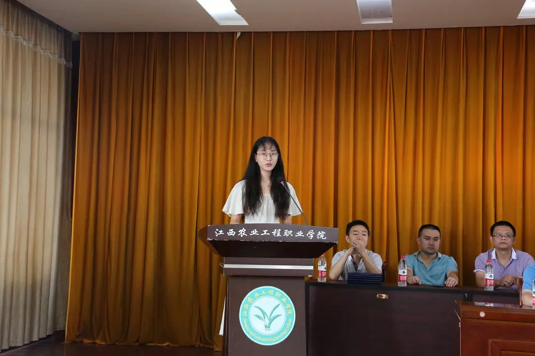 20级农产品质量检测班同学代表欧云芳作了发言。她向学院领导、老师表示崇高敬意的同时,感恩母校让她能够在学习中实践,在实践中成长,也祝愿母校的明天更加辉煌。