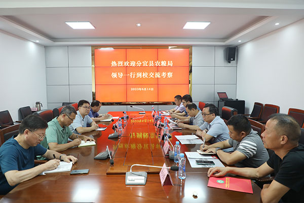 6月14日,分宜农粮局有关负责人携同江西世界村数字健康农业有限公司、新余景源农业开发公司有关负责人到校进行交流考察。学院副院长陈金和、生物工程学院及科技园负责人,双方就校企合作进行了深入交流。