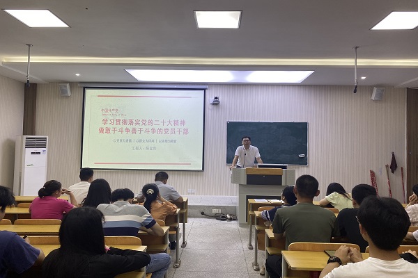 为指导党支部开展主题教育,进一步推动主题教育走深走实,6月6日,学院副院长陈金和在培训教室给中医药学院所有师生党员和入党积极分子讲授题为《学习贯彻落实党的二十大精神,做敢于斗争善于斗争的党员干部》的专题党课。