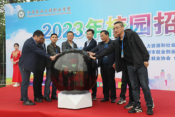 学院党委副书记、院长杨帆宣布学院2023年校园招聘会启动,学院领导和樟树市人力资源和社会保障局相关领导共同点亮启动球,招聘会正式开始。启动仪式由副院长陈金和主持。本次招聘会共有172家优质企业参加,包括国有企业、上市公司、高新技术企业等,提供岗位上千个,岗位涉及各个分院、各个专业。