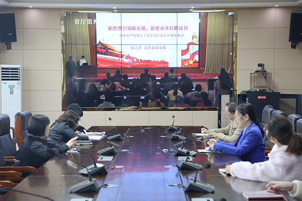学院组织全体中层女干部、女工委委员、生物工程学院和中医药学院的女教师在分会场参加了此次宣讲活动。此次宣传活动内容丰富、形式多样,通过进一步学习党的二十大精神,进一步坚定了“听党话、感党恩、跟党走”的决心,我院将按照“以学铸魂 以学增智 以学正风 以学促干”的要求认真开展习近平新时代中国特色社会主义思想主题教育,为奋力谱写江西高质量发展新篇章贡献巾帼力量。