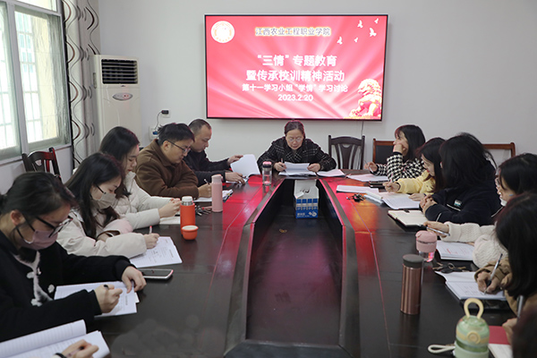 •     2月20日,学院开展“三情”专题教育暨传承校训精神活动第二天,11个学习小组以“学情”为专题进行了学习研讨。学院领导和中层干部以及全体教职工参加。