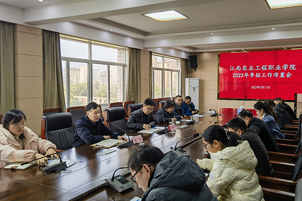 2月17日下午,学院2023年单招工作部署会在惟公楼409会议室召开。学院党委副书记、院长杨帆出席会议并讲话,各县市区负责人及招生办全体工作人员参加了会议,会议由副院长陈金和主持。
