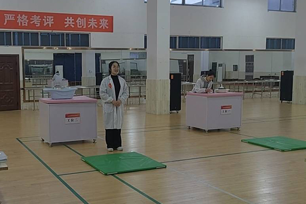 此次考核分理论考试和实操考试两项。考核内容涉及幼儿安全防护、生活照料、日常保健及早期发展指导四个模块。理论考试以机考形式开展,考试时长60分钟;实操考核由考生随机抽取两道考题,备考30分钟后进入考评区展开实施。在考务工作人员的共同努力下,考核工作衔接有序,进展顺利,圆满完成了考核任务,获得外校督导员和考评员的一致认可。