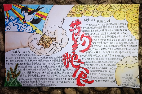 为进一步弘扬中华民族勤俭节约的传统美德,增强广大学生爱粮节粮意识,组织学生开展以“科学用粮 爱粮节粮”为主题的制作手抄报活动。同学们通过搜集相关主题内容,设计不同的版块,运用多种趣味的表达方式,诠释科学用粮、爱粮节粮的重要性,同时也倡导大家养成节约粮食的好习惯,珍惜每一粒粮食。一件件作品色彩亮丽,内容丰富,学生不仅用文字表达自己的心声,也从另一个角度传承中华民族勤俭节约的美德,争做一名珍惜粮食的卫士。