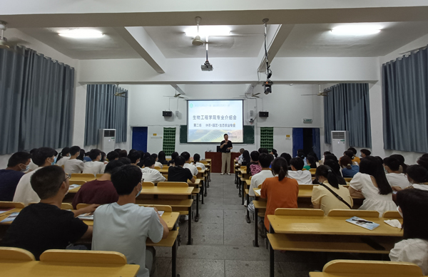 为促进2022级新生对所学专业的认识和了解,让新生更快地明确学习目标与方向,合理规划大学生活,生物工程学院9月20日-21日按专业分场次在第四、第五多媒体教室召开新生专业介绍会。生物工程学院负责人、专业教师、2022级新生班主任和全体新生参会。
