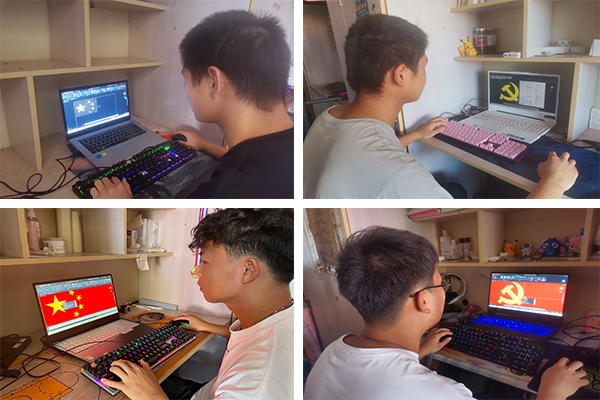 上午,在7栋533寝室里,一片敲击键盘的“啪啪”声,6名21数控班学生坐在电脑面前,在老师的指导下,利用CAD课堂上所学的知识绘制国旗和党旗,以独特的方式欢度国庆佳节,以良好的学习态度迎接党的二十大的召开。