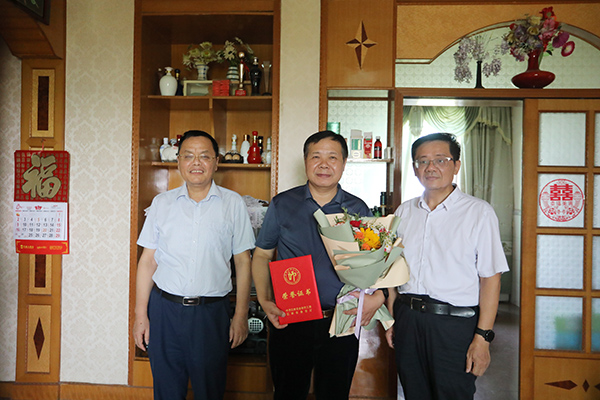 9月9日,在第38个教师节来临之际,学院党委书记张新春和党委副书记、院长杨帆分别走访慰问了学院教师代表,代表学院向他们致以节日的祝福和诚挚的问候,并为三位2022年获得光荣从教三十周年荣誉称号的教师,颁发了“光荣从教三十周年荣誉证书”。
