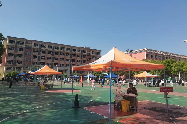 根据疫情防控需要,此次核酸检测取样地点安排篮球场及门球场开阔地带,为避免人员聚集,参加检测的人员分批分时间段抵达检测地点,学生安排在篮球场,安排了五组检测场地,教职工及家属等安排在门球场检测。全程佩戴口罩,保持安全距离有序排队,经过卫生消毒、信息核对后进行采样,整个检测过程井然有序。