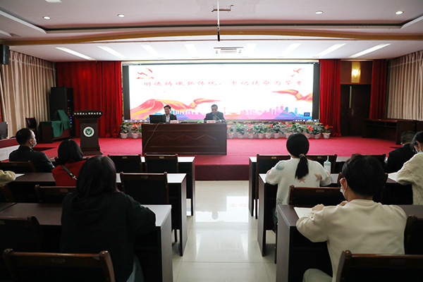 4月14日晚,学院党委书记张新春同志在多功能报告厅以《明德铸魂弘传统,牢记使命写华章》为题为第54期入党积极分子上专题党课,党委副书记章小朋主持。