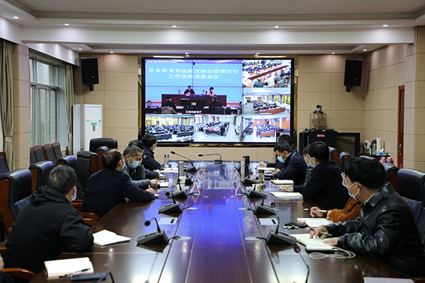 3月21日,全省教育系统新冠肺炎疫情防控工作视频调度会议召开。学院党委书记张新春,党委副书记、院长杨帆等在家院领导,及疫情防控领导小组成员在学院分会场惟公楼409会议室参会。