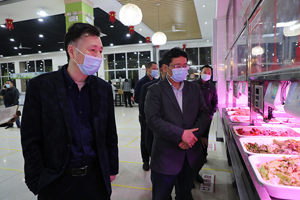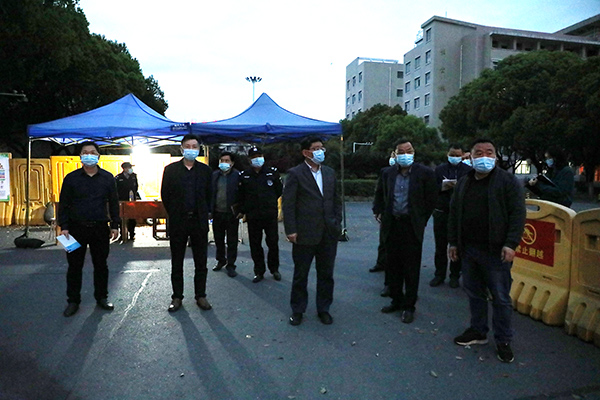 3月17日晚,学院党委书记张新春,党委副书记、院长杨帆一行对学校防疫工作和重点防疫区域进行了巡查。