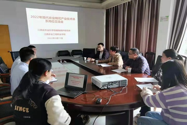 3月11日,江西省棉花产业技术体系栽培岗位专家孙桂琴及团队成员与省农业科学院植物保护研究所病虫害岗位专家黄蓉团队成员共同进行技术交流。