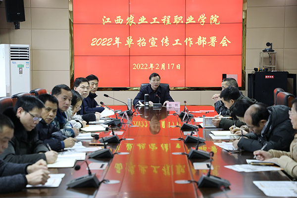 2月17日下午,学院2022年单招宣传工作动员部署会议在惟公楼409会议室召开。学院党委副书记、院长杨帆参加会议并讲话,党委副书记章小朋、副院长龚福保、周维、陈金和及各县市区负责人等参加了会议。龚福保主持会议。