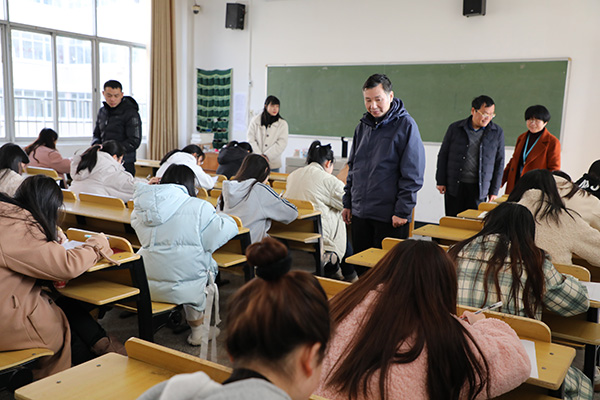 元月4日开始,我院期末考试全面展开。学院党委副书记、院长杨帆、学院党委副书记章小朋和教务处负责人深入考场开展巡查工作。