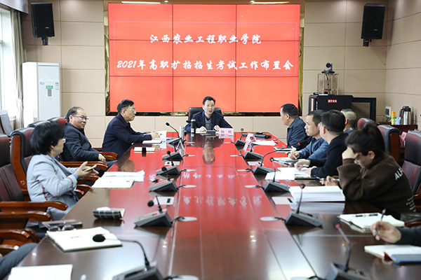 11月18日下午,学院2021年高职扩招招生考试工作部署会在惟公楼409会议室召开。党委副书记、院长杨帆,党委副书记章小朋,副院长龚福保、周维、吕湘江,各部门负责人及招生办工作人员参加了会议。会议由副院长龚福保主持。