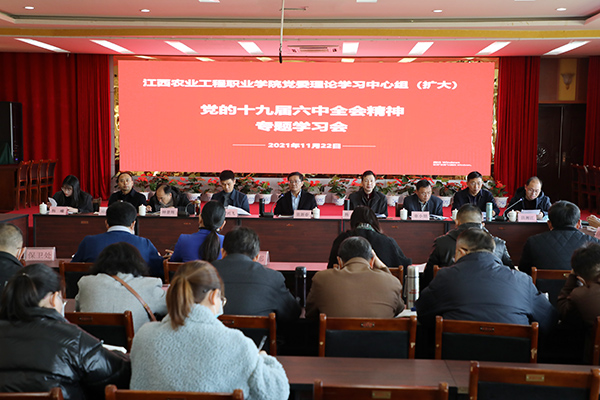 11月22日,学院党委理论学习中心组(扩大)专题学习会在多功能报告厅召开,传达学习党的十九届六中全会以及全省领导干部会议、省农业农村厅领导干部会议精神,对学院宣传贯彻落实工作进行动员部署。学院党委书记张新春主持并讲话,党委副书记、院长杨帆传达有关会议精神,在家院领导参加会议,江西洪州职业学院列席旁听工作组全程旁听。