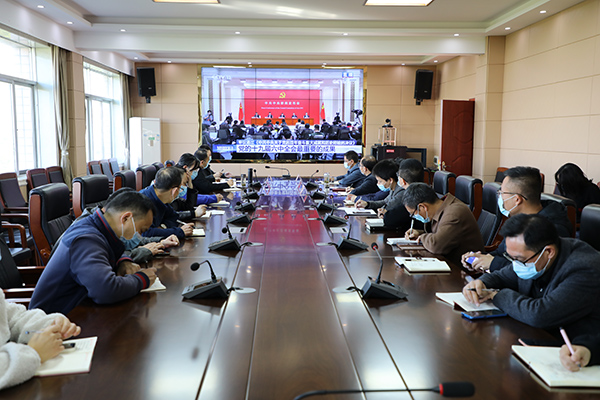 在家院领导杨帆、章小朋、许振华、吕湘江,各处室、党支部主要负责人到场收看。