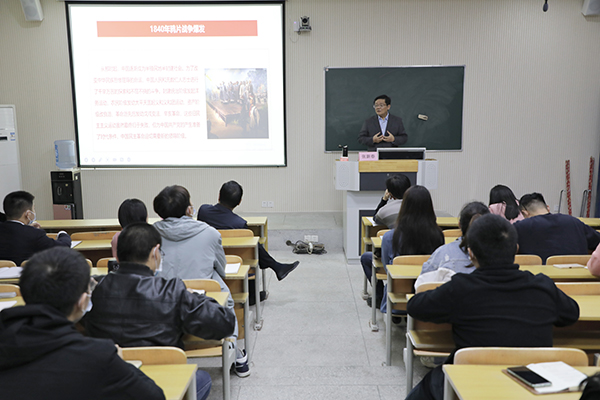 张新春以《从百年党史中汲取奋进力量 为学院实现高质量发展贡献青春与力量》为题,从中国共产党的百年历史是一部艰辛探索、走向成功的历史,中国共产党的百年历史是一部为人民谋幸福、为民族谋复兴的历史和立足岗位,为学院发展贡献自己的青春与力量等三个部分,通过一个个鲜活的例子,为学员生动展现了党的辉煌历史。