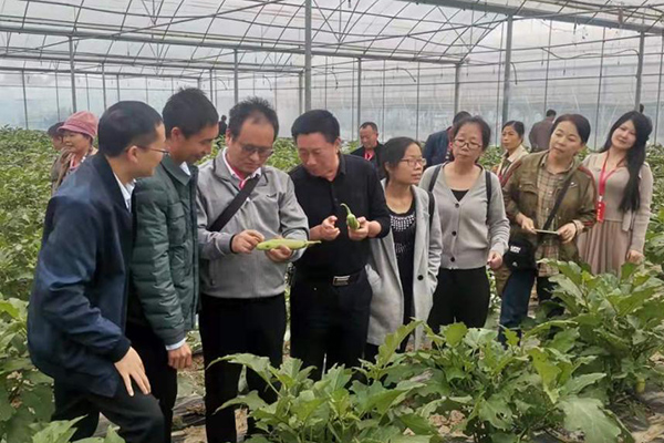 在青原区晨炚农业合作社,合作社董事长介绍了合作社的规模和发展历程。该合作社主要包括蔬菜种植、水稻种植和农机服务等方面经营项目。在蔬菜种植负责人的带领下,学员们参观了茄子、辣椒及黄瓜等蔬菜种植大棚,并与种植技术人员交流蔬菜施肥、喷洒无公害农药等技术。