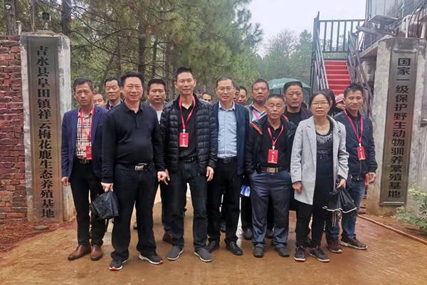 在吉水县祥云梅花鹿生态养殖基地,学员们参观了养殖基地,基地创办者罗富苟介绍梅花鹿养殖规模及养殖技术。