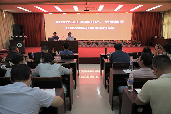 王平风教授以“像蚂蚁一样工作,像蝴蝶一样生活”为主题,围绕辅导员工作的认识、辅导员管理工作实务和辅导员自我提升进行授课;舒曼教授以“积极心理学对育人工作影响与变革——用“心”塑造阳光心态”为主题阐述积极心理学的概念、作用和实施。两位专家理论知识丰富,实践经验精湛,讲授风趣幽默,得到与会领导、老师一致赞许。