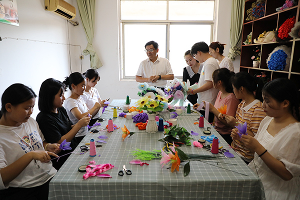 与同学谈手工艺作品制作