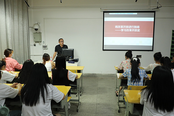 在全国上下喜迎中国共产党成立100周年之际,6月22日,学院副院长周维在惟勤楼304教室围绕“将改革开放进行到底——学习改革开放史”主题,为幼儿师范学院2019级学生上了一堂生动的党课。