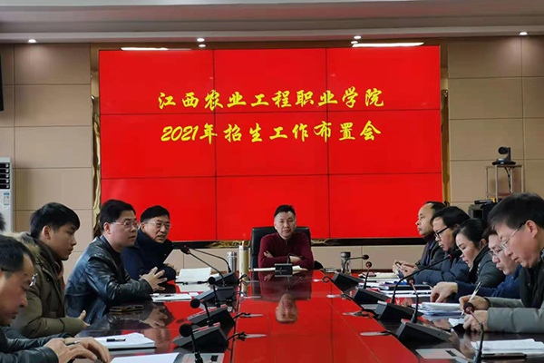 招生办负责人传达了《江西省2021年高等职业教育单独招生实施办法》文件内容,解读了学院2021年招生工作方案,具体部署了2021年单招宣传工作有关事项,计财处负责人就招生工作差旅报账事项作了说明。
