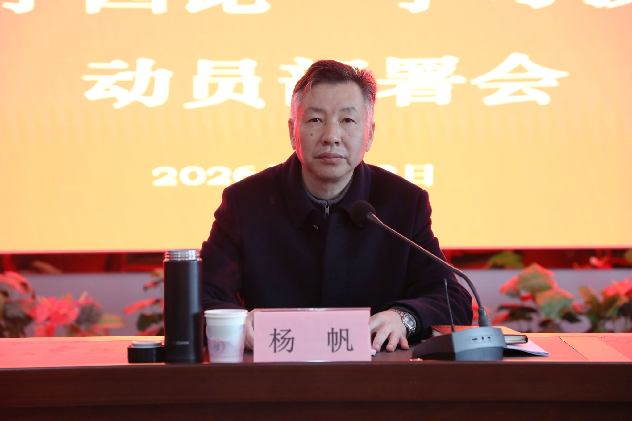 杨帆全面回顾了2025 年学院在党建引领、内涵建设、项目攻坚、全面从严治党等方面取得的成效,同时深刻指出了存在的短板不足,强调要坚持问题导向,在“十五五”开局之年逐项破解、持续提升。展望未来,杨帆围绕“十五五”规划思路,聚焦党的领导、思政育人、办学达标、专业建设、师资培育、产教融合、科研服务、国际合作、安全保障九大板块,高站位谋篇布局未来五年发展,并系统部署2026 年及新学期重点任务,号召全体教职工锚定“十五五”规划和“新双高”建设目标,坚定信心、开拓进取,团结协作、守正创新,奋力推动学院各项事业高质量发展。此外,杨帆还对全体教职工提出三点要求:一是领导干部要扛旗领跑谋全局,攻坚破局当标杆;二是教师要德技双馨铸师魂,赋能育人创佳绩;三是辅导员(班主任)要深耕一线守初心,家校共育护成长。