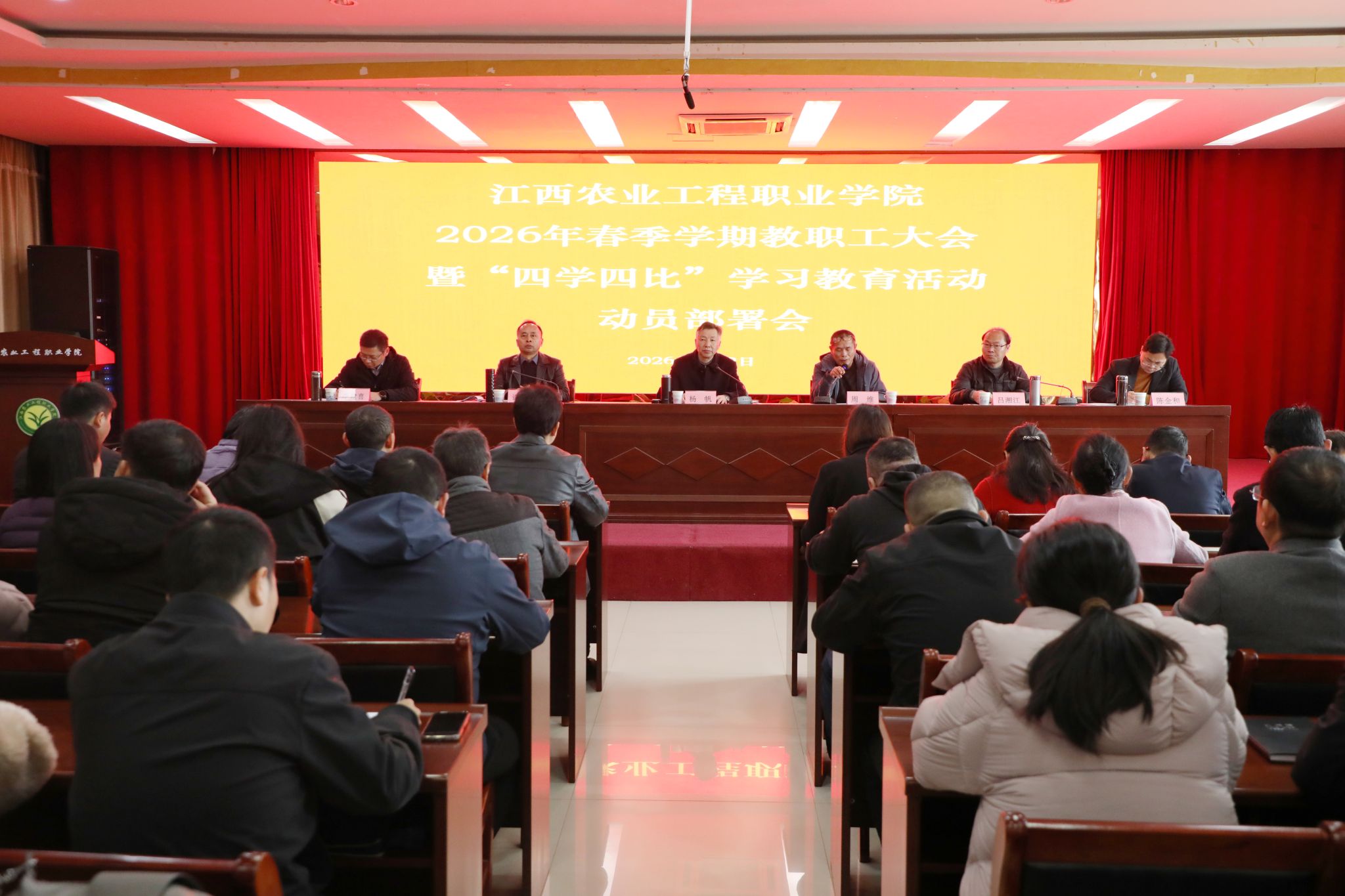 随后,各分管院领导对开学相关工作作了具体部署,并宣读了学院2026年春季学期“四学四比”教育活动实施方案。