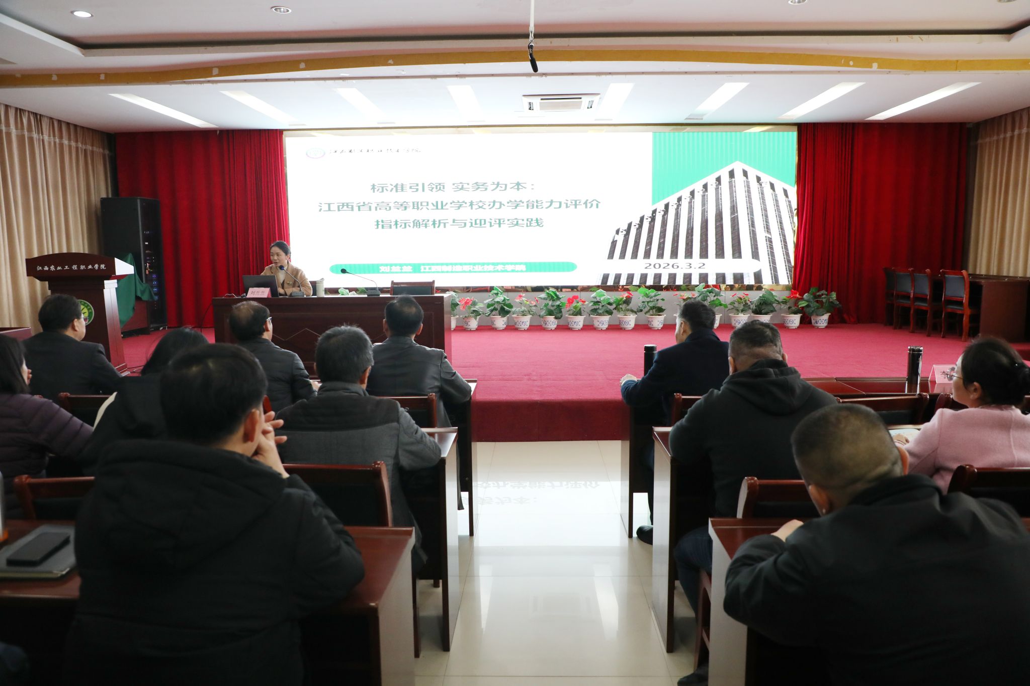 近日,学院“耘香园大讲堂”第五期讲座在多功能报告厅举行。本次讲座特邀江西制造职业技术学院刘兰兰副教授,为全体教师干部300余人作了题为《标准引领,实务为本:江西省高职办学能力评价指标解析与迎评实践》的辅导报告。
