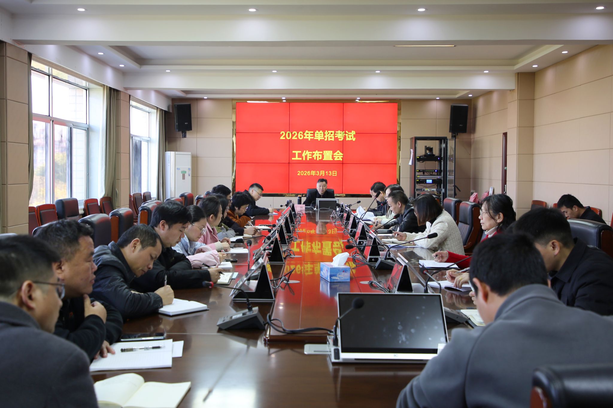 为切实保障2026年高职单招技能校考考试平稳顺利进行,近日,学院召开高职单招工作布置会,对考务组织、安全保障、服务配套等各项工作进行全面安排。学院党委书记杨帆出席会议并讲话,副院长陈金和主持会议,在家院领导及各处室部门负责人、各二级学院负责人参加会议。