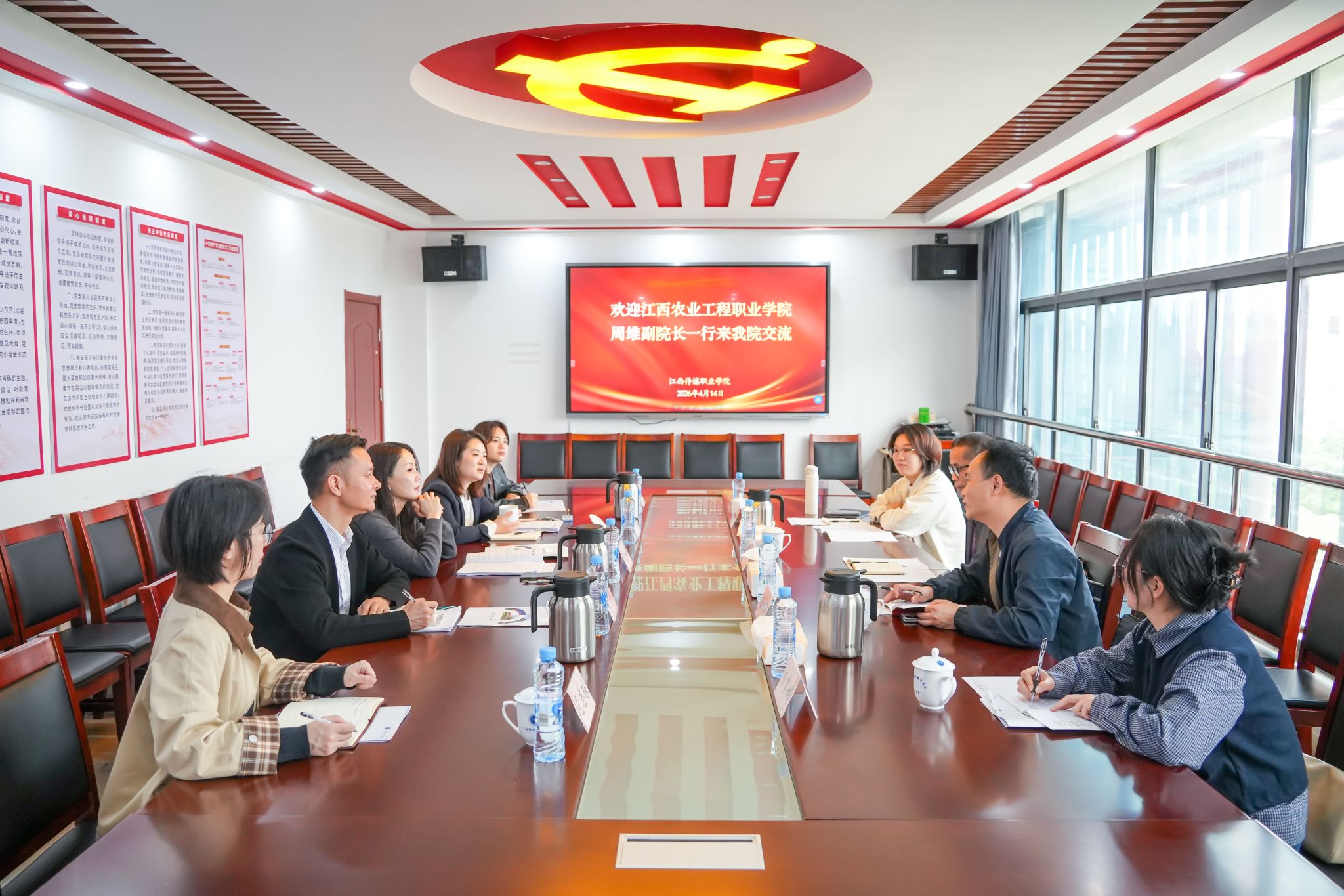 为进一步优化我校组织人事相关管理制度,提升人事管理规范化水平,4月14日,学院副院长周维带领组织人事处工作人员一行4人赴兄弟院校江西传媒职业学院开展调研交流活动。江西传媒职业学院副院长吴丹妮、组织人事处负责人热情欢迎周维一行。双方围绕绩效工资分配、职称评审、岗位设置等与教职工切身利益密切相关的工作开展座谈研讨。